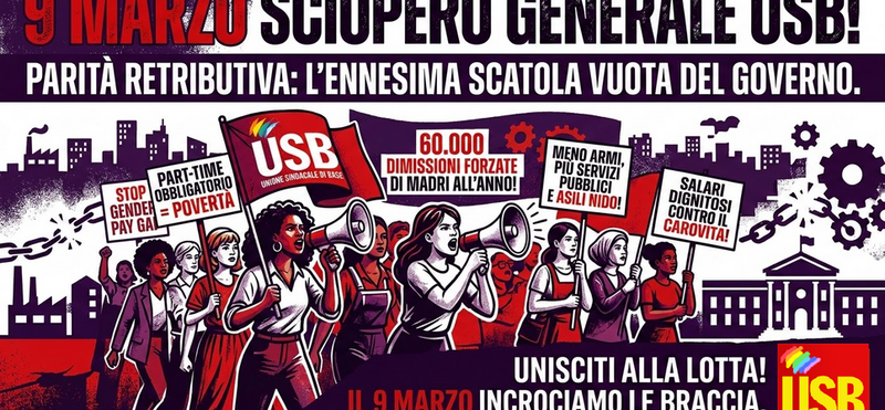 Per queste ragioni, USB ribadisce la necessità che la lotta per i diritti e il salario sia anche lotta contro la guerra. Rivendicare un salario dignitoso significa esigere che i soldi dei lavoratori tornino ai lavoratori, e non vengano bruciati nell’economia di guerra. Significa lottare per un welfare pubblico e universale che liberi le donne dal ricatto del lavoro domestico e dalla precarietà forzata. Non accetteremo di essere la carne da cannone di questa crisi. Contro il riarmo e lo sfruttamento, la nostra risposta è la mobilitazione permanente: per il salario, per i diritti, per un'economia che serva la vita e non la distruzione. Questi i nostri contenuti dello sciopero del 9 marzo.
