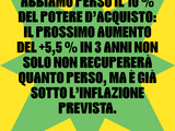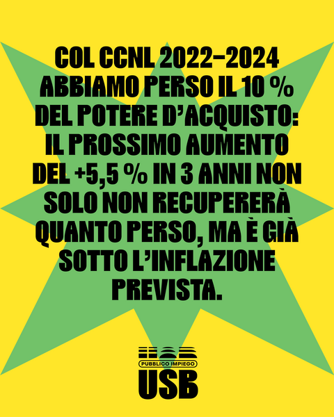 Il 10% del potere d’acquisto perso con il rinnovo del contratto 2022-2024 non solo non sarà recuperato, ma inciderà negativamente anche sul triennio successivo (2025-2027), perché la percentuale di aumento già determinata del 5,4% verrà calcolata su un monte salari più basso del 10%.